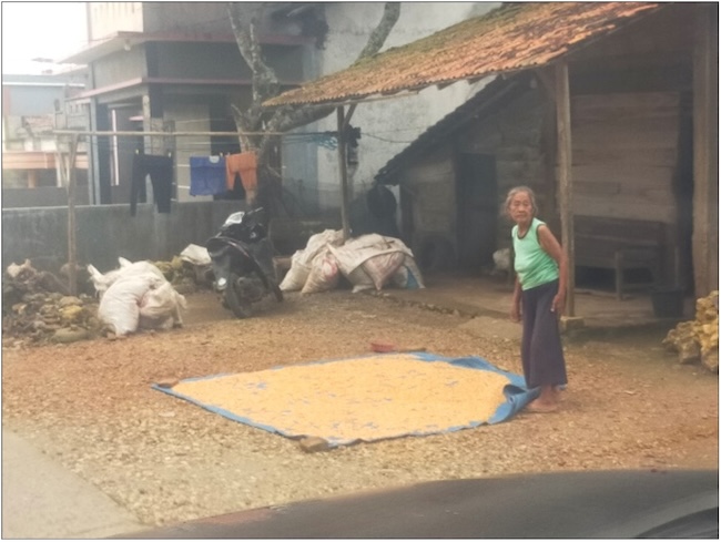 Bu Warti, panggilan untuk Suwarti, memperjelas informasi bahwa petani yang menanam jagung di lahan Perhutani adalah mereka yang memiliki sanggeman. Sepengetahuan saya, berdasarkan riset di Lereng Gunung Merapi (2008-2010), sanggeman adalah kerjasama antara Perhutani dan petani di sekitar pinggir hutan dengan ketentuan bahwa petani harus turut merawat tanaman Perhutani dengan imbal-balik mereka boleh memanfaatkan lahan kosong di sela-sela tanaman Perhutani itu untuk bercocok-tanam dan mengambil ranting-ranting kering yang jatuh dari pepohonan yang Perhutani tanam. Luasnya lahan dan banyaknya produksi jagung di kawasan ini mendorong salah seorang pajabat pemerintah Kabupaten Grobogan menyatakan bahwa kabupatennya siap menjadi lumbung jagung untuk mendukung program nasional pemerintah.