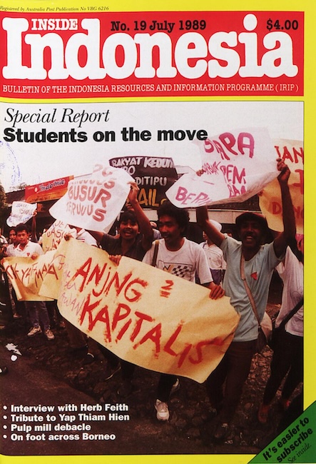 Inside Indonesia’s special report on ‘Students on the move’ published in 1989 earmarked the moment when the anti-Suharto sentiment intensified amongst the young. It manifested in the mushrooming of discussion groups and social organisations, slowly forming what Max Lane called “another process of rebuilding a political alternative based on people.” And, as we now know, that rebuilt civil society played a role in driving the New Order away from power, leading to Reformasi.