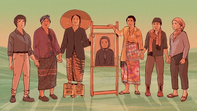 In Our Mothers’ Land, Firdaus travels to different parts of the Indonesian archipelago to interview female activists who are responding in different ways to the environmental problems in their immediate surroundings. Among the interviewees are Sukinah from the Kendeng mountain range in Jawa Tengah province; Aleta Baun and Lodia Oematan from the Mollo highlands in Timor, Nusa Tenggara Timur province; Eva Bande and Yu Patmi from Luwuk, the capital of the Banggai regency in Sulawesi Tengah province and Farwiza Farhan from the Kawasan Ekosistem Leuser conservation area in Aceh province.