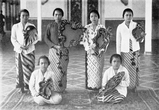 Women with carved bowls for use at the Cirebon courts. Reproduced in JW van Dapperen. ‘Moeloeddagen te Chirebon,’ Djawa XIII, 1933.