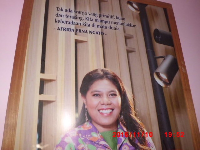 Afrida Erna Ngato's portrait, hung at home. "There is no such thing as ancient, primitive or alienated citizens. We can show the world that we exist." (Safrudin Amin)