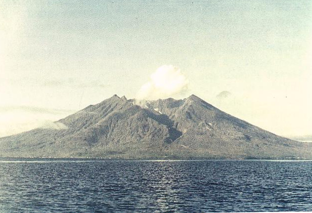 A digitised photograph of the active Makian volcano, Kie Besi. Its last major eruption in 1988 greatly damaged its surroundings. (Sumaryono/Volcanological Survey of Indonesia)
